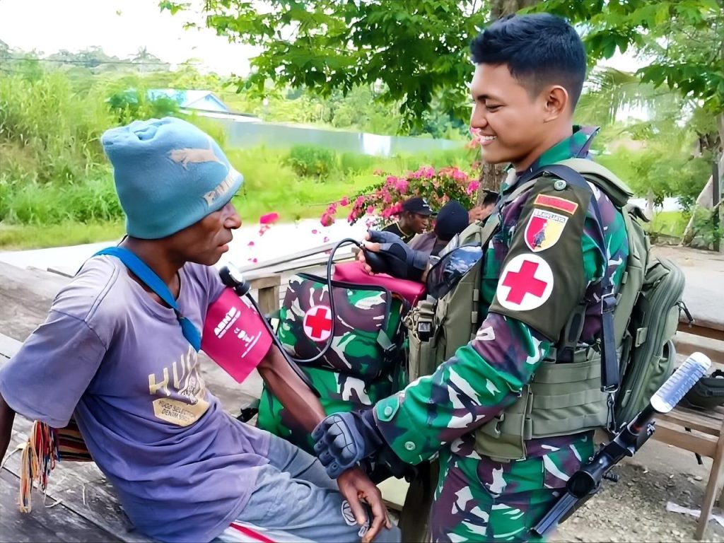 Bompai, Kabupaten Keerom, Papua – Satgas Yonif 512/QY yang melaksanakan pengamanan perbatasan Republik Indonesia – Papua Nugini (RI-PNG) wilayah Kabupaten Keerom dan Kabupaten Pegunungan Bintang yang salah satu Posnya berada di Distrik Bompai. Pos Bompai Satgas Yonif 512/QY yang dipimpin oleh Danpos Bompai, Serma Indra Dwi Churniawan. Diawal penugasannya Serma Indra Dwi Churniawan beserta Anggotanya melaksanakan kegiatan silaturahmi dengan masyarakat Bompai, Kabupaten Keerom, Provinsi Papua. Selasa, (1/10/2024).