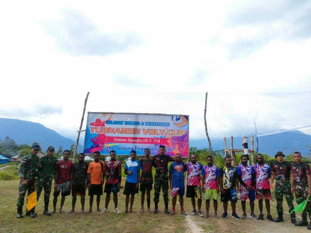 Dalam rangka meriahkan HUT TNI Ke-79 Pos Kobakma Satgas Pamtas Yonif 641/Bru menggelar turnamen bola voli antar warga di Distrik Kobakma, Kab. Mamberamo Tengah, Prov. Papua Pegunungan, (05/10/2024).