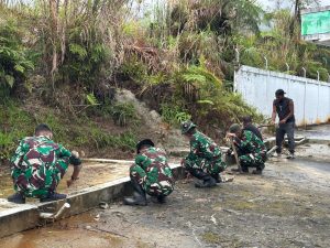 Dogiyai,- Demi menjaga kebersihan sarana kesehatan warga perbatasan, Satgas Yonif 756/WMS bersama masyarakat melaksanakan karya bhakti pembersihan di Puskesmas Distrik...