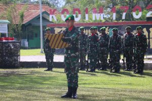 Wamena - Dandim 1702/Jayawijaya, Letkol Arh Reza Ch. A. Mamoribo, S.E., M.Han. memimpin Upacara Korp Raport kenaikan pangkat Periode 1...
