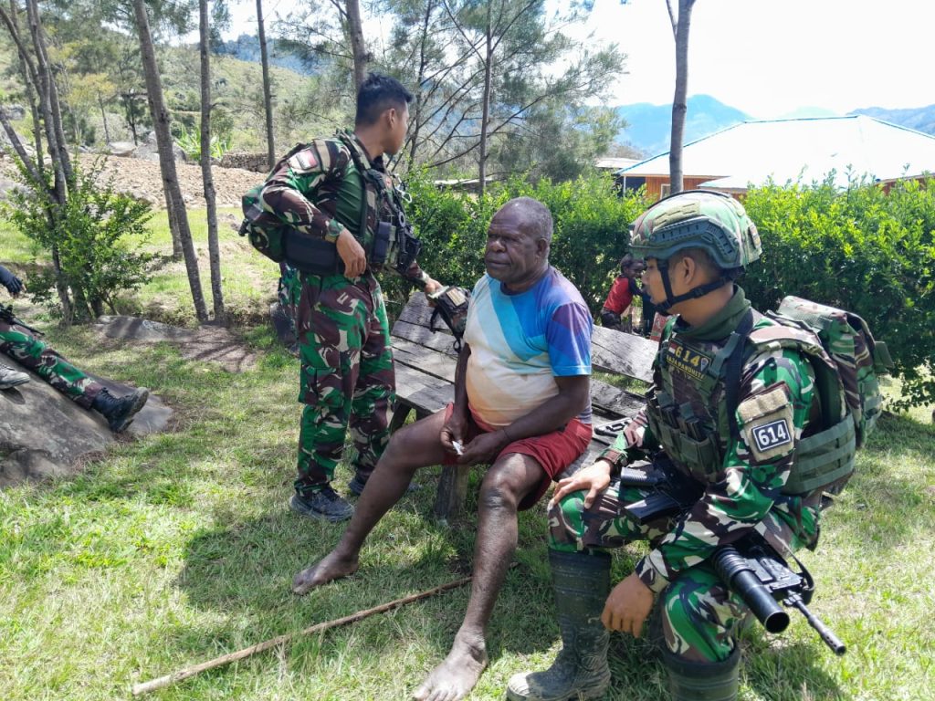 LANNY JAYA – Memperkuat ikatan tali silaturahmi dengan tokoh masyarakat setempat, Pos Balingga Satgas Yonif 614/Raja Pandhita, kunjungi rumah Kepala Desa Binolanggeng, Distrik Balingga, Kabupaten Lanny Jaya, Papua Pegunungan, Selasa (01/10).