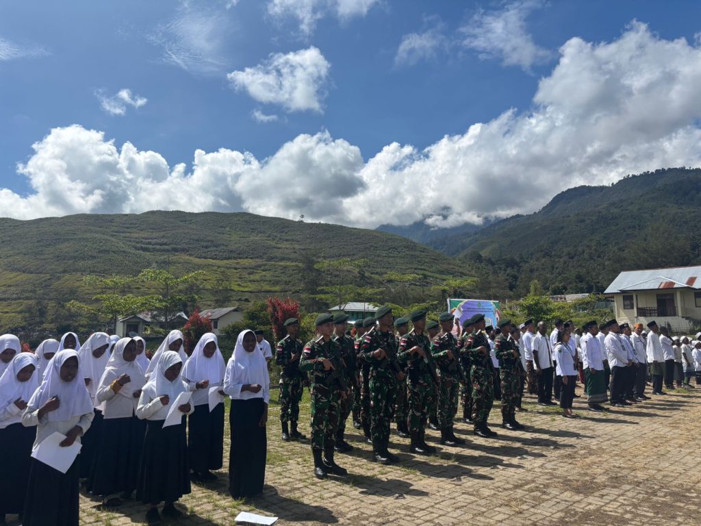 Pos Kotis Walesi Satgas Yonif 641/Bru berperan dalam Upacara Peringatan Hari Santri Nasional (HSN) 2024 yang dilaksanakan di MTsN Negri Jayawijaya, Distrik Walesi, Kab Jayawijaya Prov. Papua Pegunungan. (22/10/2024).