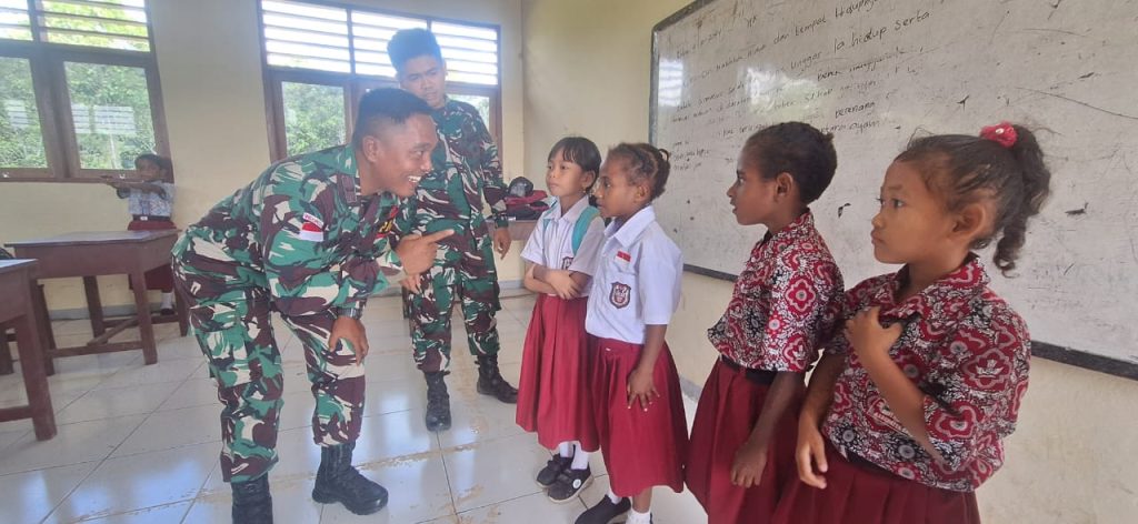 Senggi, Kabupaten Keerom, Provinsi Papua— Satgas Yonif 512/QY yang melaksanakan tugas Pengamanan Perbatasan di wilayah perbatasan Rebuplik Indonesia-Papua Nugini (RI-PNG), tepatnya di Kabupaten Keerom dan Kabupaten Pegunungan Bintang, terus menunjukkan komitmennya dalam mendukung pembangunan pendidikan, khususnya di tingkat Sekolah Dasar. Senin, (14/10/2024).