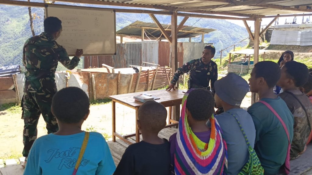 Kiwirok, Kabupaten Pegunungan Bintang, Provinsi Papua – Satgas Yonif 512/QY yang bertugas di wilayah perbatasan Republik Indonesia – Papua Nugini (RI-PNG) selain melaksanakan tugas menjaga Kedaulatan NKRI, tetapi juga aktif dalam mendorong kemajuan pendidikan dan literasi di masyarakat. Salah satu Pos Satgas Yonif 512/QY yang berada di Kiwirok, Kabupaten Pegunungan Bintang, Provinsi Papua yang dipimpin oleh Dankipur Kapten Inf Nugraha Khofa, S.T. Han, membuat suatu trobosan tempat literasi yang ramah bagi masyarakat sekitar, khususnya anak-anak. Melalui kegiatan belajar dan bermain yang interaktif, Satgas Yonif 512/QY berupaya menumbuhkan semangat literasi di wilayah perbatasan. Selasa, (8/10/2024).