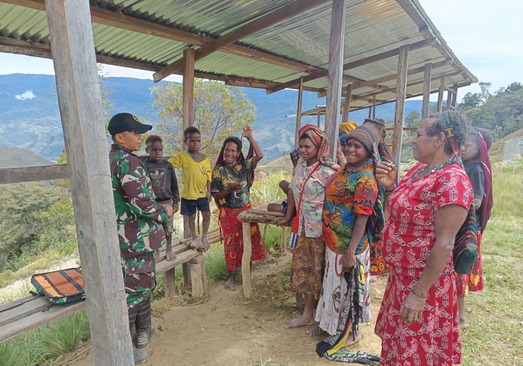 LANNY JAYA – Satgas pengamanan perbatasan (Pamtas) Yonif 614/Raja Pandhita Pos Popome, melaksanakan bakti sosial berupa pemeriksaan kesehatan dan penyuluhan kesehatan kepada masyarakat Kampung Popome, Distrik Mokoni Kabupaten Lanny Jaya, Papua Pegunungan. Jum’at (25/10).