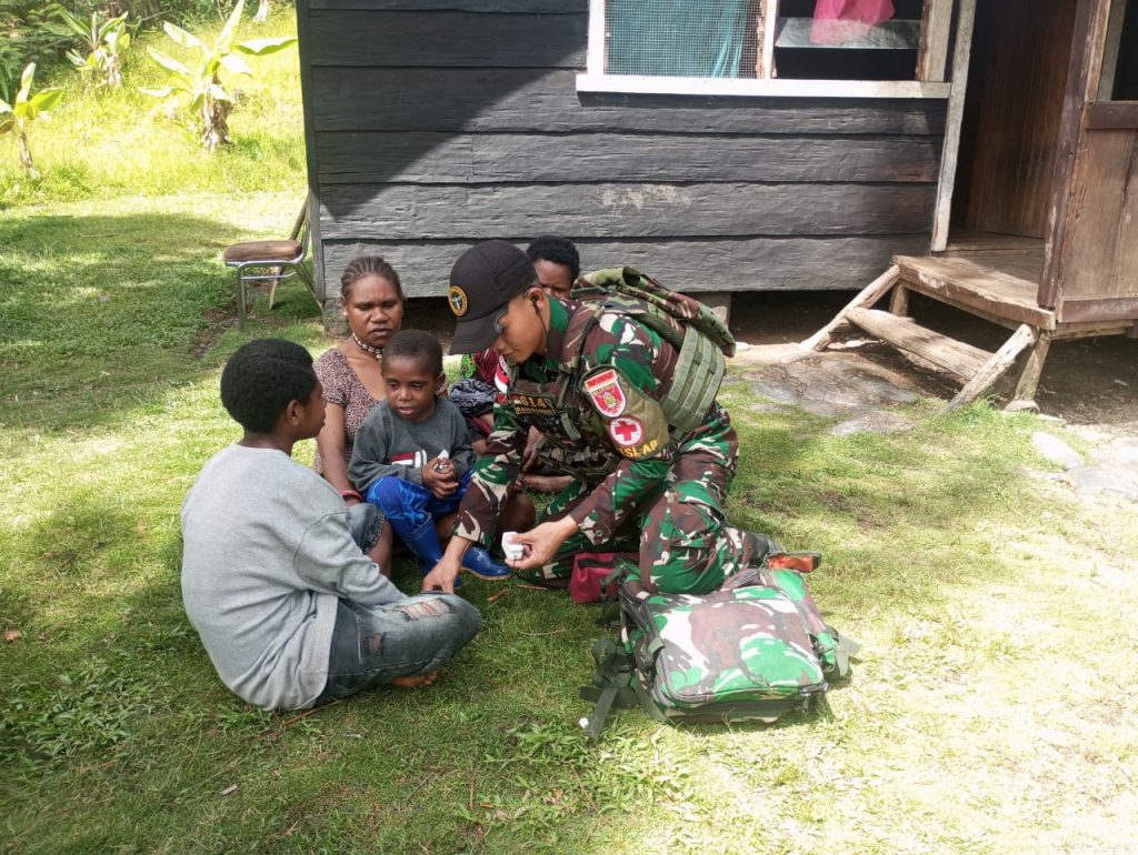 TOLIKARA – Sebagai upaya untuk terus mempererat hubungan silaturahmi dengan masyarakat, dan meningkatkan pelayanan kesehatan pada mereka. Satgas Yonif 614/RJP Pos Karubaga melaksanakan anjangsana dan pengobatan keliling pada masyarakat di jalan Irian, Desa Pura Pura, Distrik Kuari, Kabupaten Tolikara, Papua Pegunungan.
