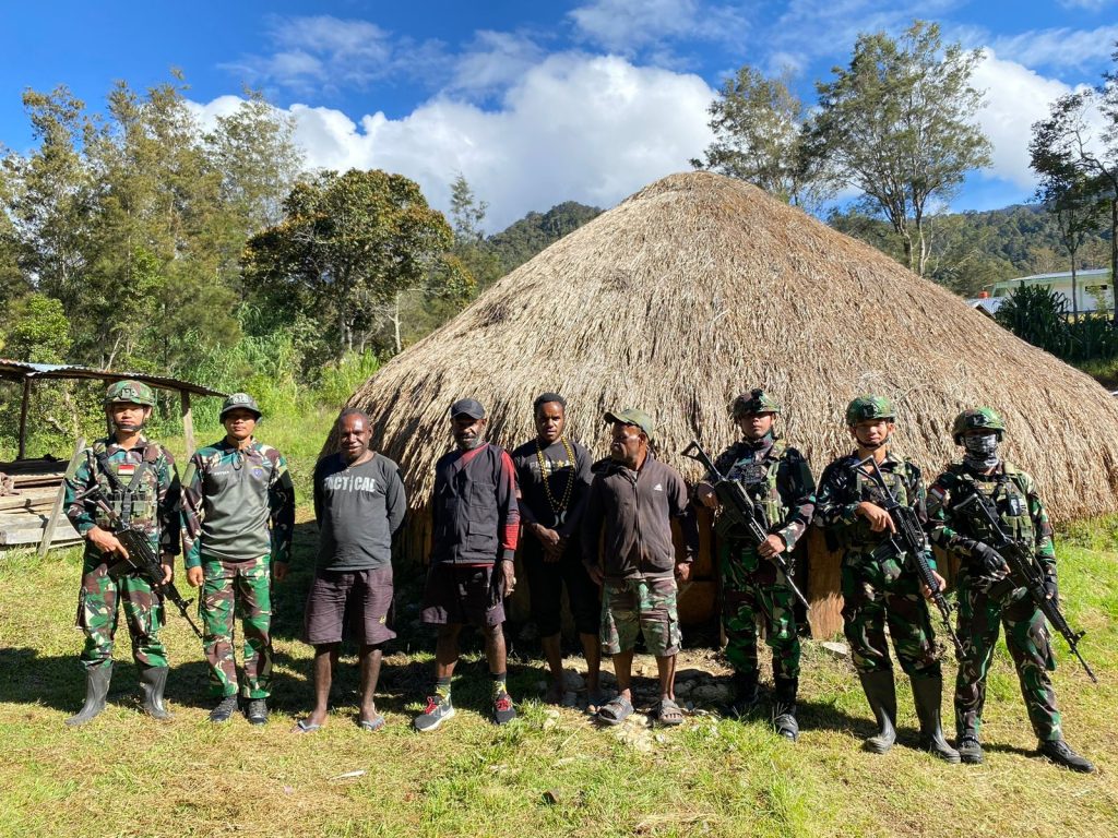 LANNY JAYA – Sebagai bentuk peduli terhadap kebersihan lingkungan, personel Satgas Yonif 614/Raja Pandhita melaksanakan anjangsana sekaligus bantu bersihkan rumah Bapak Mantri Kmur Kiwo yang berada di Desa Numbokawi, Distrik Malagai, Kabupaten Lanny Jaya, Papua Pegunungan, Senin (07/10).