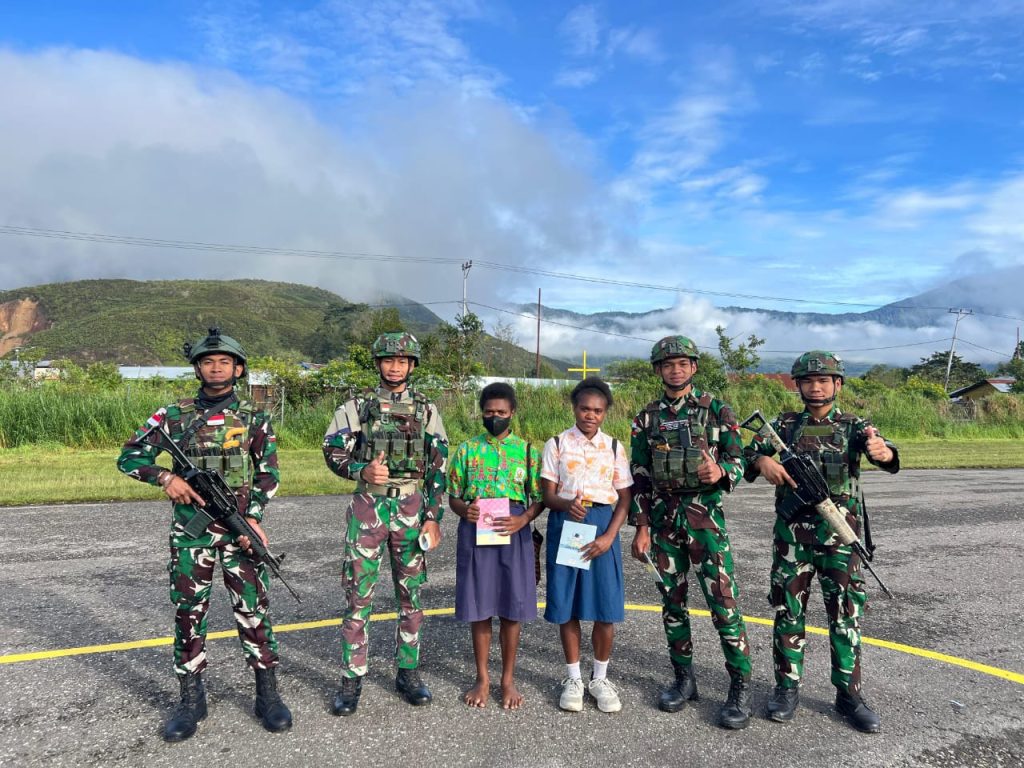 Dogiyai,- Untuk meningkatkan minat belajar anak-anak di wilayah Papua, Pos Moenamani Baru, Satgas Yonif 756/WMS membagikan buku tulis gratis kepada anak-anak papua di Kampung Ikemanida Distrik Kamuu Kabupaten Dogiyai Provinsi Papua Tengah, Jumat (18/10/2024).