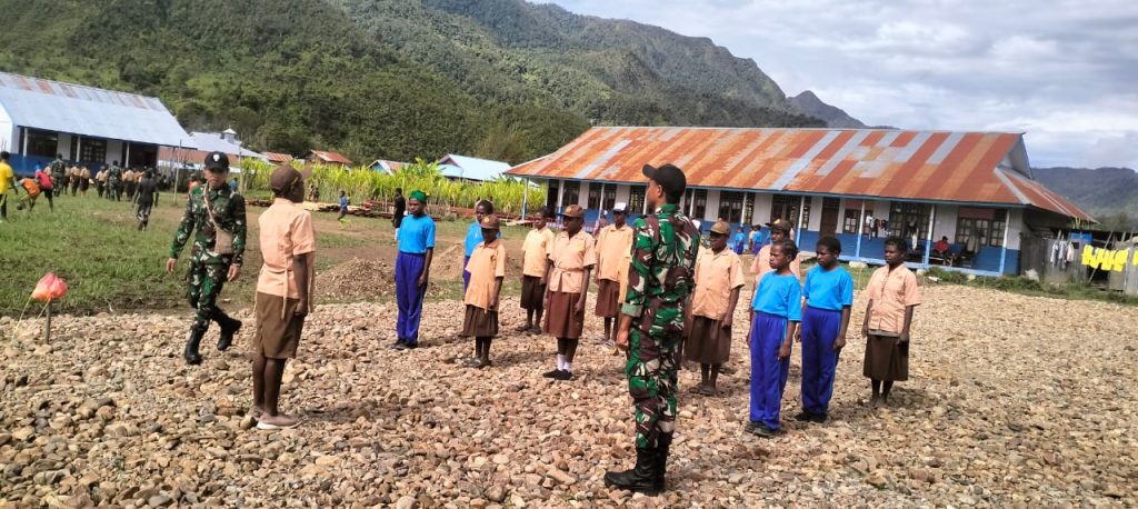 Kegiatan ini dipimpin oleh Dantim Pos Obano Serda Alexander serta beberapa anggota pos memberikan materi pelatihan kepada siswa SMPN 1 Paniai Barat Distrik Obano Kabupaten Paniai.