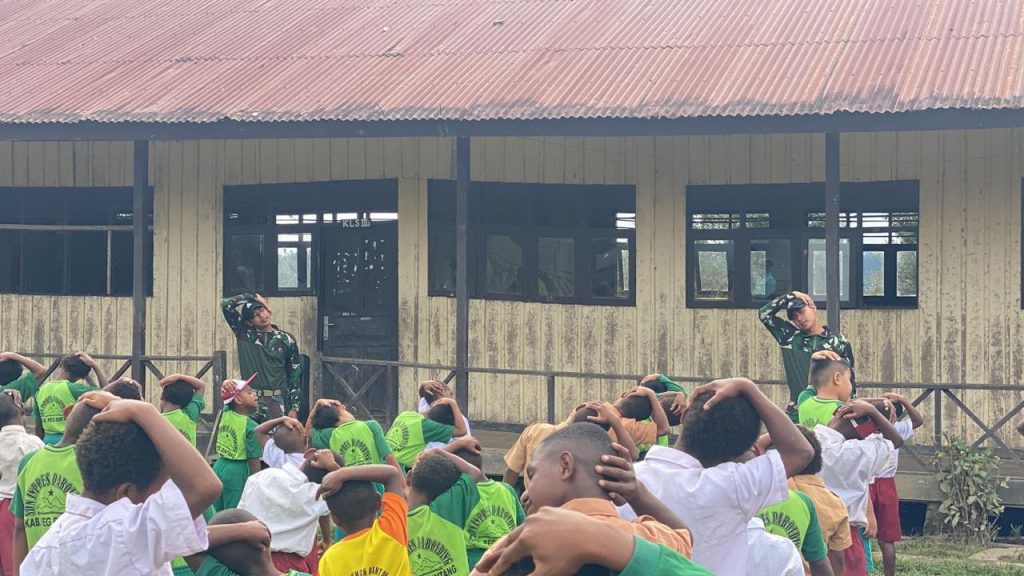 Oksibil, Kabupaten Pegunungan Bintang, Papua. – Satgas Yonif 512/QY dari Pos Komando Taktis (Kotis) Oksibil, Pegunungan Bintang, mengadakan kegiatan senam bersama siswa-siswi SD Negeri Balil pagi hari ini, sebagai bentuk upaya menjaga kebugaran dan mempererat hubungan antara Satgas Yonif 512/QY dengan masyarakat setempat. Kamis, (31/10/2024).