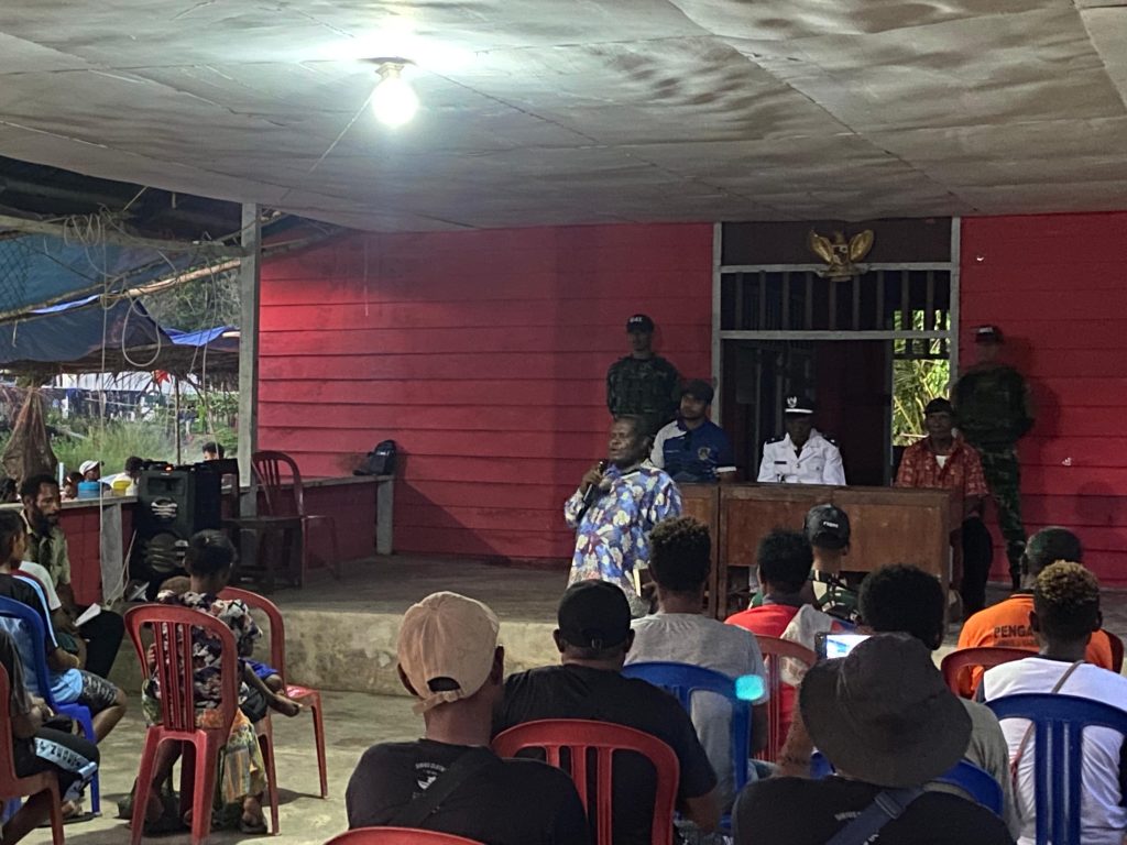 Satgas Yonif 641/Bru melalui Pos Muara Nawa hadir dipelantikan Ondo Api bapak Daud Hore (42 th) sebagai Kepala Desa Muaranawa, Suasana penuh kegembiraan mewarnai Desa Muaranawa saat masyarakat setempat mengadakan acara syukuran, Distrik Airu, Kabupaten Jayapura, Provinsi Papua,(24/10/2024).