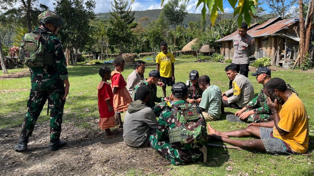 Jaya Wijaya — Sinergitas TNI-Polri menjadi satu kekuatan untuk menciptakan stabilitas keamanan nasional dan dampaknya langsung dirasakan oleh masyarakat. Hal ini diwujudkan oleh Satgas Pamtas Kewilayahan RI-PNG Yonif 641/Beruang bersama Polsek Bolakme dalam melaksanakan kegiatan Anjangsana ke masyarakat binaan, di wilayah Distrik Bolakme, Kab. Jaya Wijaya, Prov. Papua Pegunungan, (07/10/2024).