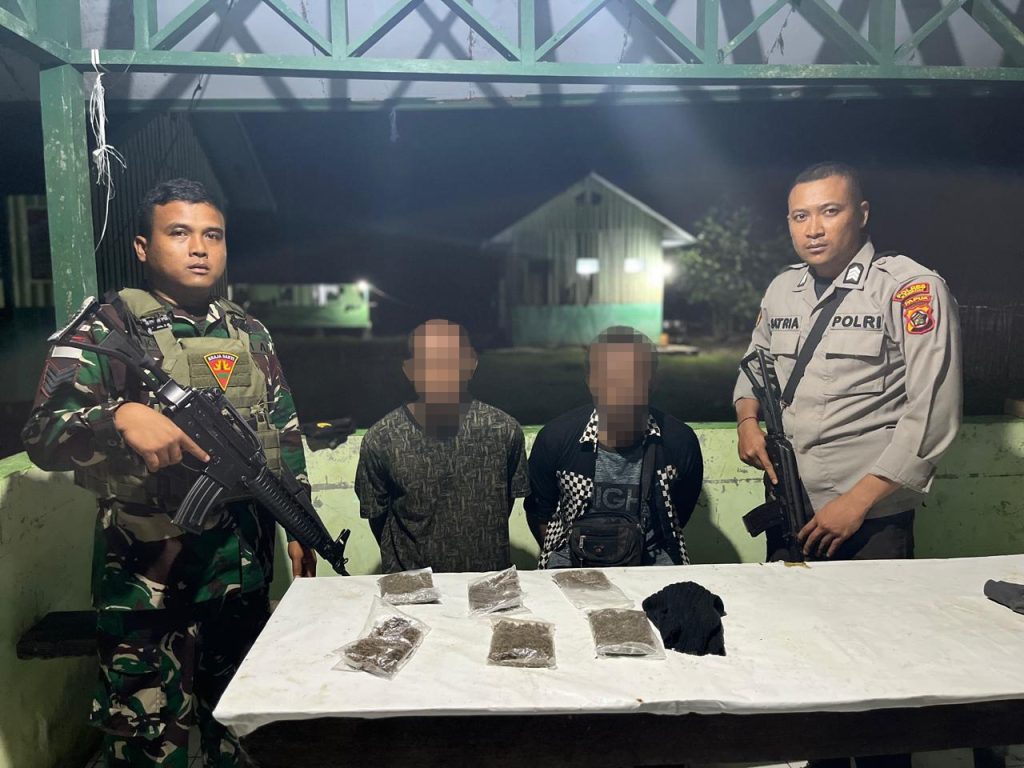 Keerom – Satgas Pamtas RI-PNG Yonif 131/Brs Pos Ujung Karang dengan Polsek Arso Timur berhasil menangkap pelaku yang membawa paket ganja kering saat melaksanakan kegiatan Sweeping di Simpang Tiga Pos Ujung Karang, Distrik Arso Timur, Kabuparen Keerom, Papua, Sabtu (26/10/2024).