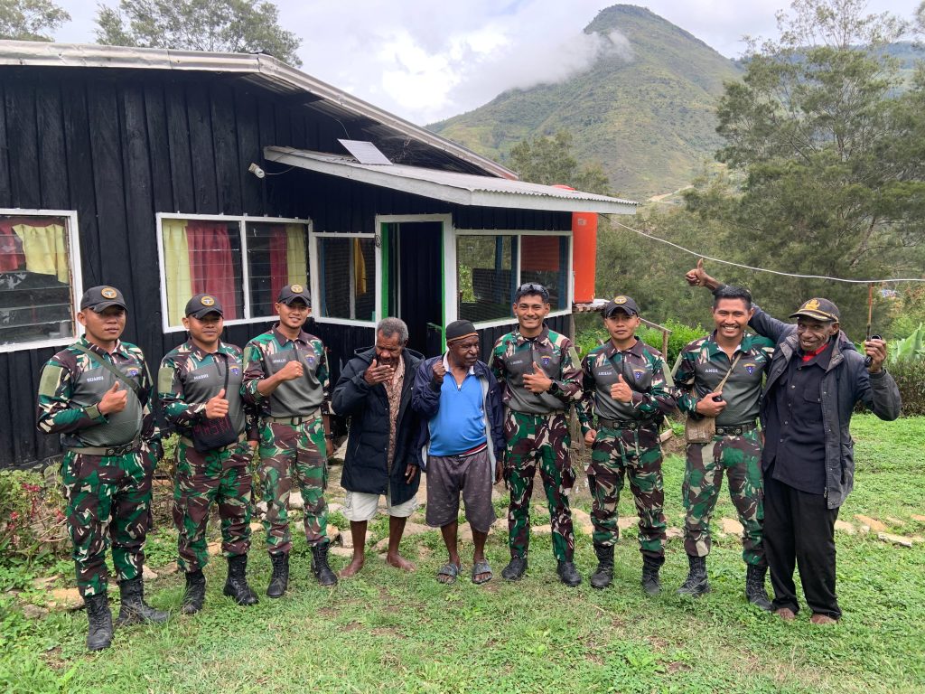 LANNY JAYA – Guna mempererat hubungan dan keakraban antara TNI dan Rakyat, Satgas Pamtas Yonif 614/Rjp melakukan anjangsana ke rumah Tokoh Masyarakat, Kepala Kampung Bugumbak yang bertempat di Kampung Bugumbak, Distrik Pirime, Kab. Lanny Jaya, Papua Pegunungan, Senin (14/10).