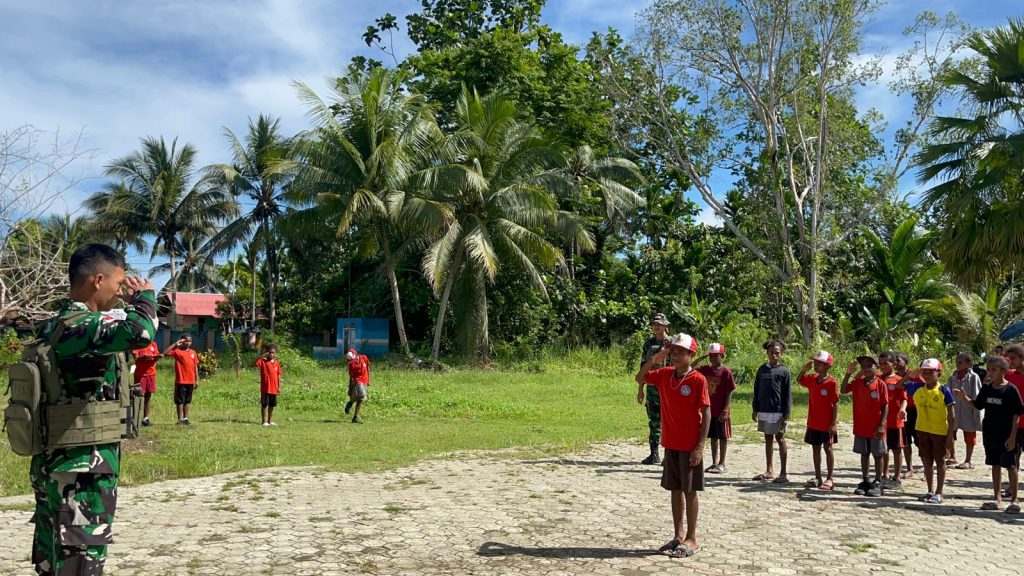 Keerom – Dalam upaya menanamkan nilai-nilai kedisiplinan, kerja sama, dan tanggung jawab sejak dini, Satgas Yonif 131/BRS melaksanakan kegiatan pelatihan Peraturan Baris Berbaris (PBB) bagi siswa-siswi SD Mosso, Distrik Muara Tami, Kabupaten Keerom, Provinsi Papua, Rabu, (30/10/2024).
