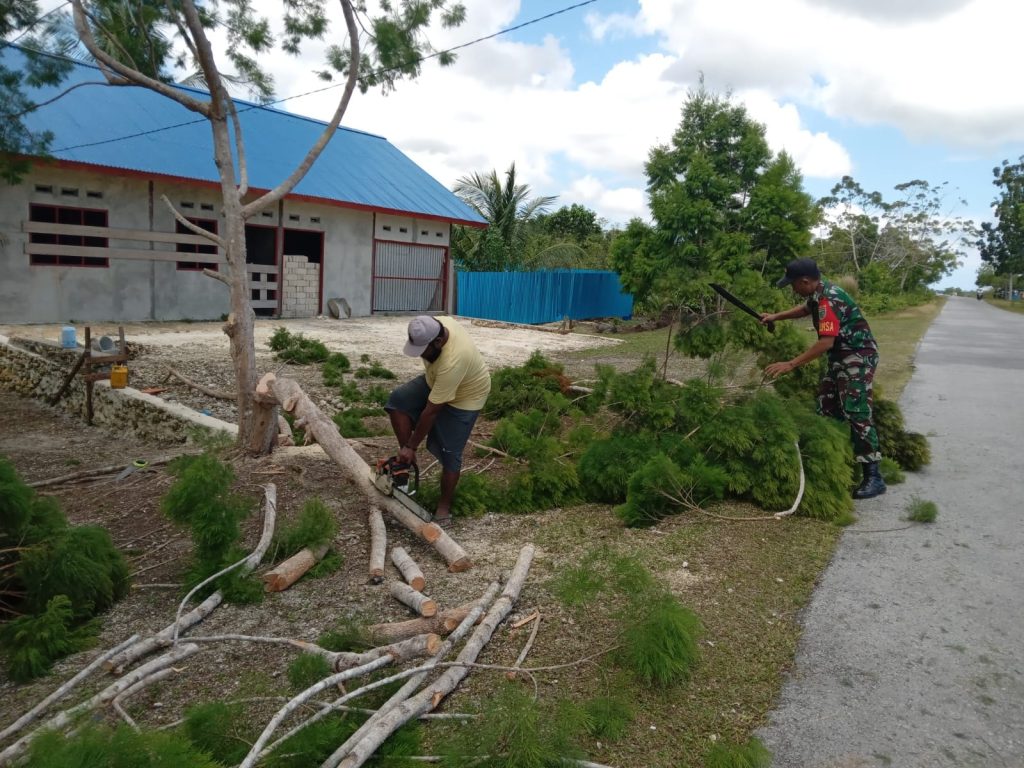 Biak Timur – Dalam upaya menjaga keselamatan pengguna jalan dan warga sekitar, Babinsa Posramil 1708-01/Biak Timur Serka Dodik Fitrianto mengambil inisiatif untuk membantu masyarakat menebang pohon yang berpotensi membahayakan di Kampung Bosnik Sub, Distrik Biak Timur, Kabupaten Biak Numfor, Senin (4/11/2024).