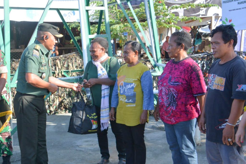 Di akhir kegiatan, Kolonel Inf Ade Rizal Muharram secara simbolis menyerahkan bantuan sembako kepada perwakilan masyarakat Pasar Youtefa.