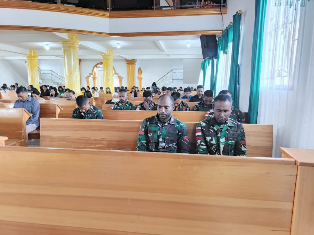Kegiatan ini hadiri oleh Dantim Pos Waghete Serda Syors Nap pada kesempatan ini pihaknya menyampaikan ibadah mingguan merupakan kewajiban setiap umat beragama nasrani, demikian pula bagi kami selaku prajurit TNI yang saat ini melakukan penugasan pengamanan perbatasan.