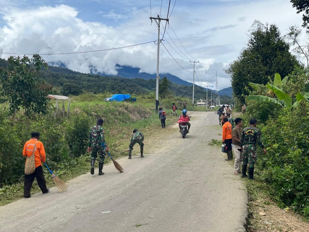 Jalan yang masih ada bebatuan dan rumput yang tebal merupakan salah satu penghalang bagi masyarakat setempat dalam beraktivitas sehari-hari. Hal tersebut mendorong Pos Mapia Satgas Yonif 756/WMS bersama aparat keamanan setempat untuk terjun langsung membersihkan jalan tersebut untuk mempermudah aktivitas masyarakat sehari-harinya. Ini merupakan wujud nyata dari kepedulian dan perhatian pos satgas terhadap kepentingan masyarakat.