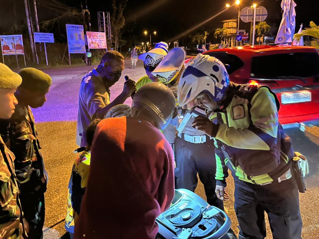 Selain menjaga ketertiban, patroli gabungan ini juga bertujuan menegakkan peraturan lalu lintas. Petugas melakukan pemeriksaan terhadap pengendara roda dua, terutama yang tidak menggunakan helm dan memakai knalpot brong.