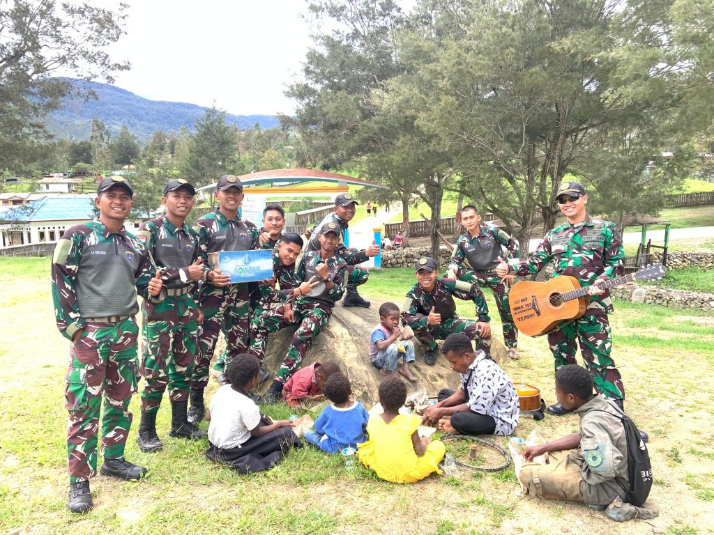 LANNY JAYA – Kepedulian untuk berbagi kasih dengan masyarakat di daerah penugasannya RI – PNG, personel Satgas Yonif 614/Raja Pandhita Pos Pirime membagikan 100 Nasi bungkus setelah melaksanakan kegiatan ibadah Minggu kepada jemaat/masyarakat di Gereja Wiyawere yang berada di Kampung Ekanom, Distrik Pirime, Kabupaten Lanny Jaya, Papua Pegunungan, Minggu (03/11)