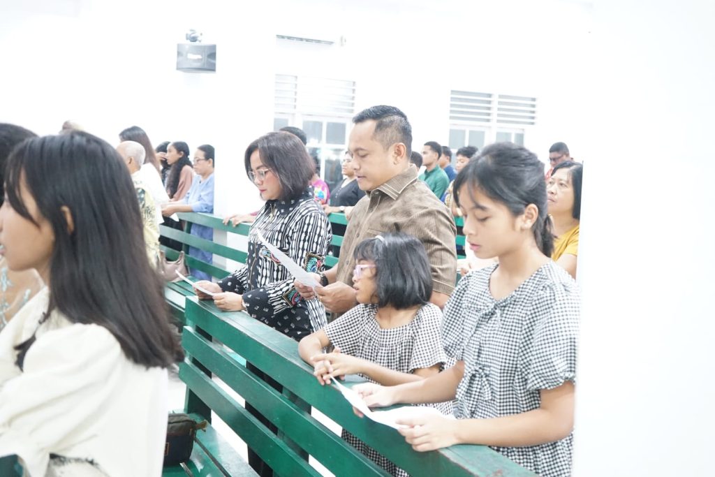Ibadah tersebut dihadiri oleh ratusan jemaat dari berbagai kalangan, termasuk tokoh agama, tokoh adat, dan masyarakat umum. Suasana semakin syahdu saat prosesi penyalaan lilin Natal dilakukan, diiringi lantunan lagu pujian yang menggema di dalam gereja. Prosesi ini menjadi simbol harapan dan terang baru yang hadir melalui kelahiran Kristus.