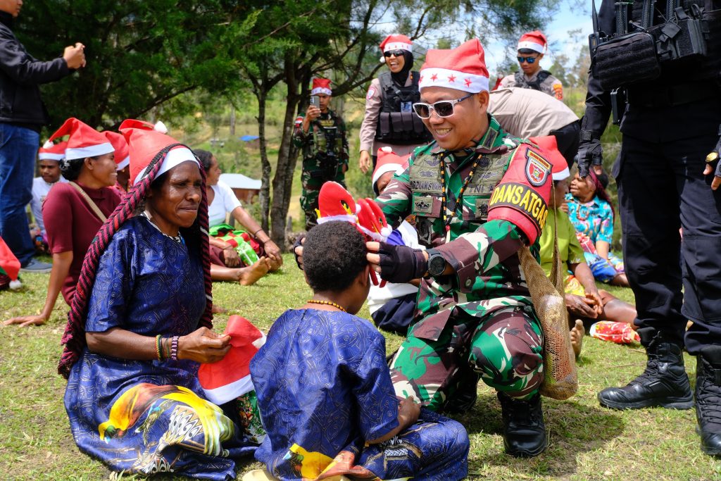 LANNY JAYA – Beralaskan cinta kasih dan sukacita pada perayaan hari raya Natal di bulan penuh kasih, Satgas Pamtas RI – PNG Kewilayahan Yonif 614/Raja Pandhita siapkan 250 paket bingkisan dan 200 Topi Natal. Dengan berpakaian Santa Claus prajurit Pos Tiom Satgas Yonif 614/RJP membagikan bingkisan Natal kepada masyarakat yang akan merayakan Natal bertempat di Gereja Dukom Kampung Ninabua, Distrik Yiginua, Kabupaten Lanny Jaya, Papua Pegunungan, Rabu (25/12/2024).