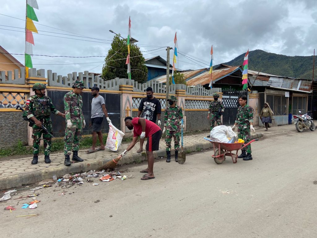 Satgas Yonif 756/WMS yang dipimpin oleh Wadanpos Sertu Agus Putra dan beberapa anggota Pos Moenamani terlibat langsung dalam pembersihan di sekitaran pasar Moenamani Distrik Kamuu Kab. Dogiyai.