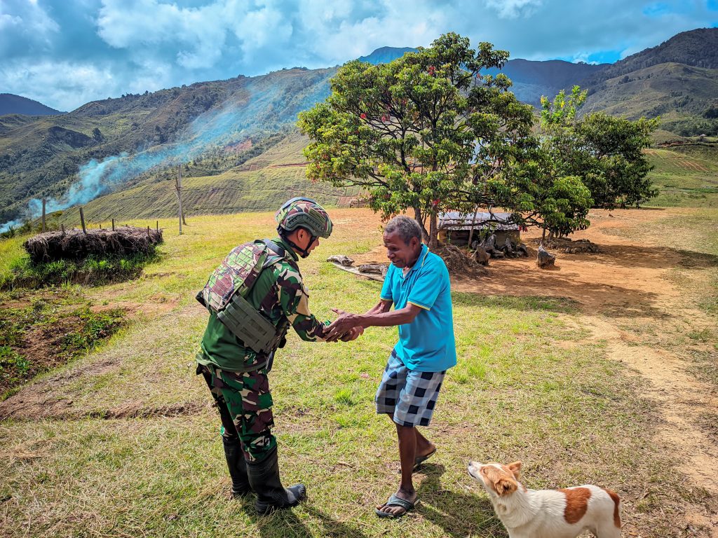 LANNY JAYA – Pos Malagayneri Satgas Yonif 614/RJP menunjukkan sikap toleransi agama yang tinggi di momen perayaan Natal. Wadanpos Letda Inf Willy beserta beberapa personel Pos Malagayneri bersilaturahmi ke rumah Bapak Yundius Kogoya (52) yang merupakan Gembala Desa Ganume, Distrik Malagayneri, Kabupaten Lanny Jaya, Papua Pegunungan, Kamis (26/12/2024).