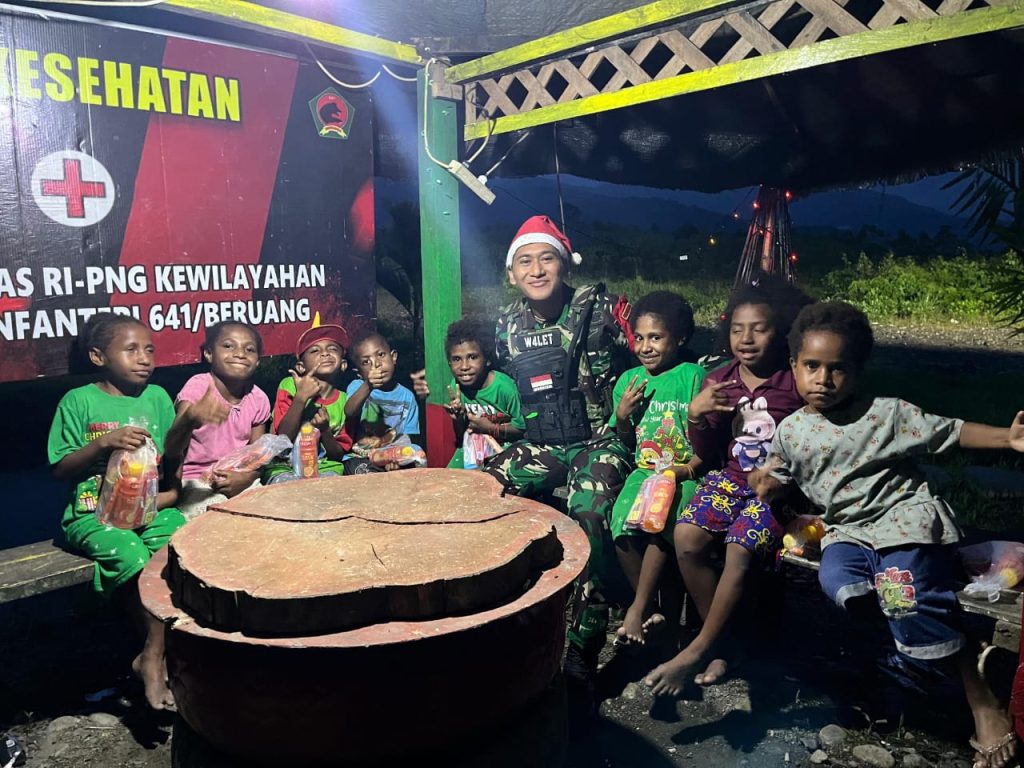 Wadansatgas Satgas Yonif 641/Bru Kapten inf I Gusti ngurah Budiartana “mengatakan bahwa anak-anak datang ke pos kami ingin merayakan hari Natal tahun 2024 bersama di pos, kami menerimanya dengan baik, sehingga kami bisa berbagi kasih serta kegembiraan kepada anak-anak di sekitar Pos Kout Elelim.