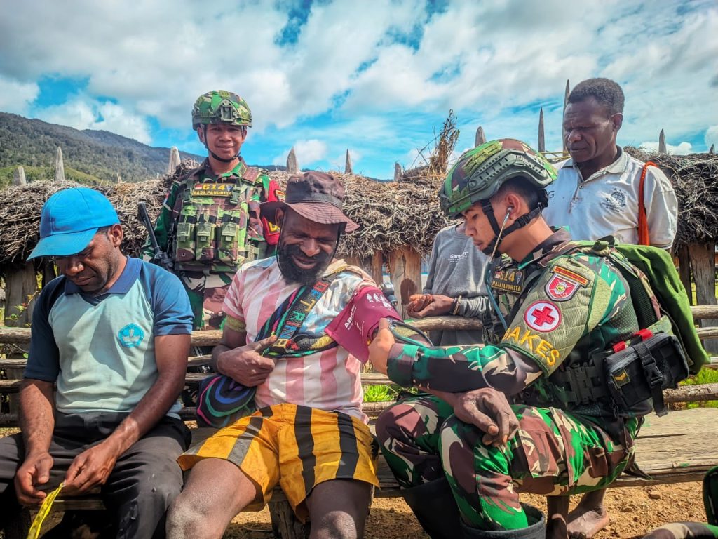 LANNY JAYA – Pos Malagayneri Satgas Yonif 614/RJP peduli kesehatan terhadap masyarakat binaan dengan memberikan pengobatan gratis bagi masyarakat yang berada di Kampung Luwanom, Distrik Malagayneri, Kabupaten Lanny Jaya, Papua Pegunungan, Sabtu (21/12/2024)