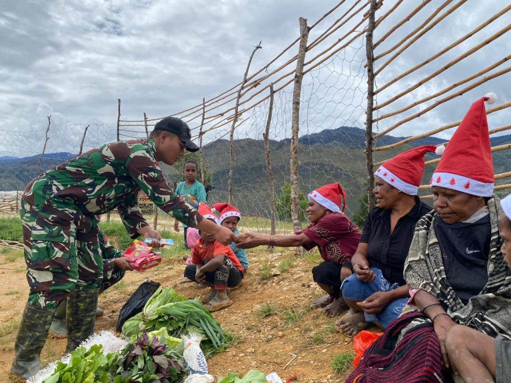 LANNY JAYA – Sebagai wujud peduli Pos Tiom (Kotis) Satgas Yonif 614/RJP dalam membantu meningkatkan ekonomi masyarakat yang ada di wilayah perbatasan Papua. Personel Satgas memborong sayuran hasil kebun warga di Kampung Konikme, Distrik Yugungwi, Kabupaten Lanny Jaya, Papua Pegunungan, Jum’at (03/1/2025).