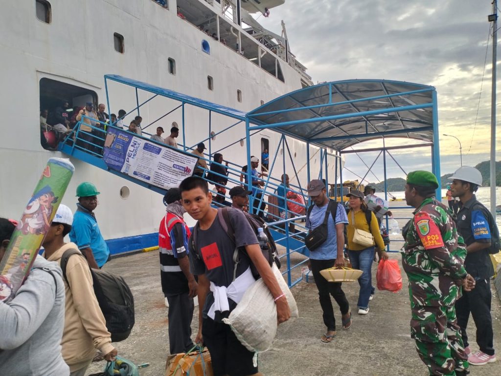 Serui – Guna memastikan keamanan dan kelancaran arus mudik dan balik seluruh warganya yang sedan liburan Natal Dan Tahun Baru, Kodim 1709/Yawa bekerjasama dengan TNI – AL, Polres Yapen, Pelni dan KPLP Serui, dalam mengamankan arus mudik dan arus balik penumpang kapal KM. Dorolonda, di Pelabuhan Kelas II Serui, Distrik Yapen Selatan,Kabupaten Kepulauan Yapen, Selasa (31/12/2024).