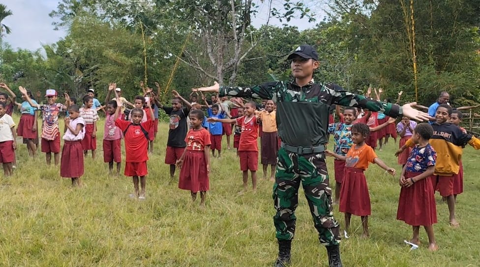 Waris, Kabupaten Keerom, Papua – Dalam upaya menanamkan gaya hidup sehat sejak usia dini, Satgas Yonif 512/QY menggelar kegiatan senam pagi bersama siswa-siswi SD YPPK Pulboa di Kampung Yuwainda, Distrik Waris. Kegiatan yang penuh keceriaan ini disambut antusias oleh para siswa dan guru yang turut serta dalam gerakan olahraga bersama. Selasa, (25/2/2025).