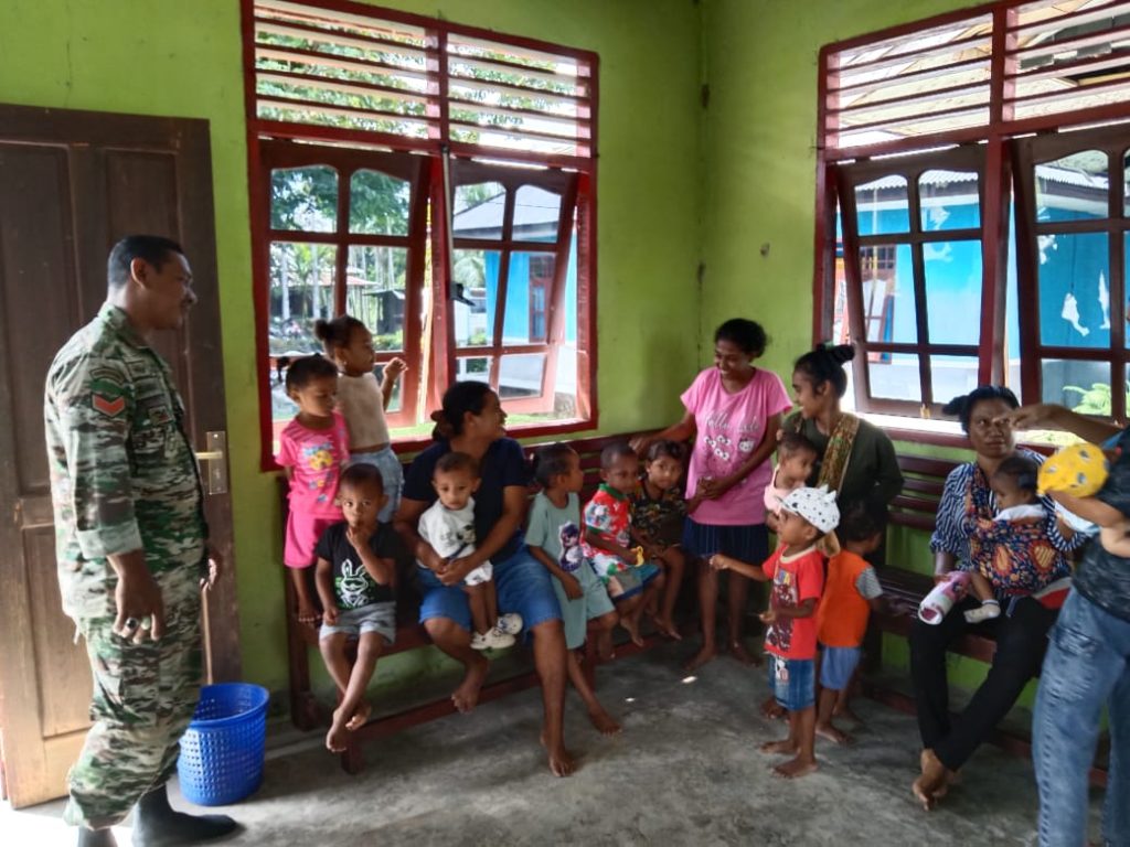Kehadirannya dilokasi pelayanan posyandu ditempat ini, merupakan wujud kepeduliannya dalam mendukung terciptanya generasi muda papua, khususnya bayi dan balita diwilayah binaannya, untuk menjadi anak yang sehat, kuat dan tangguh dalam proses tumbuh kembangnya, ujar Babinsa disela kegiatannya saat itu.