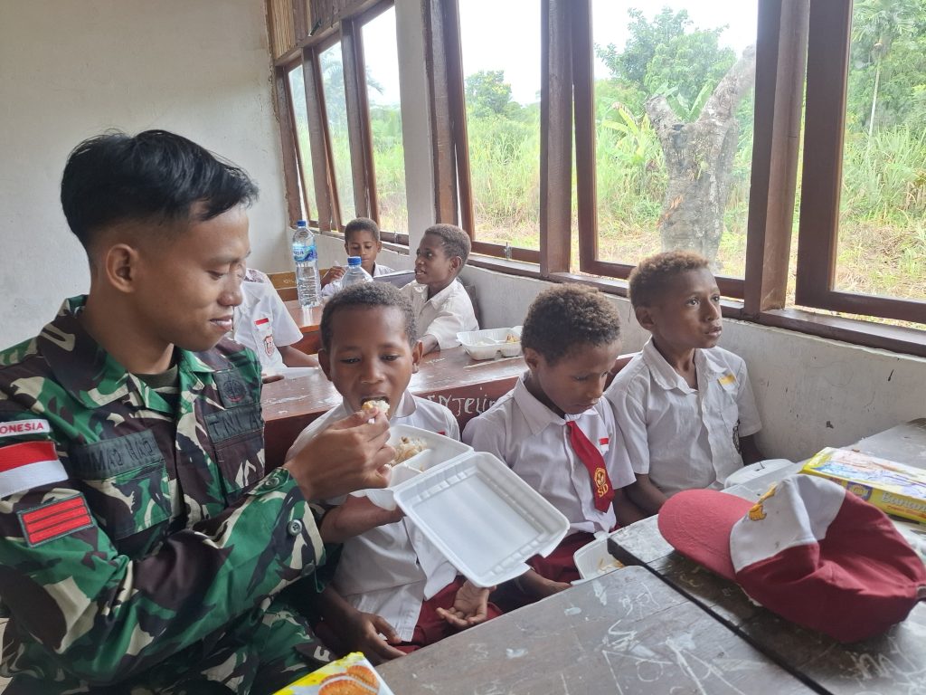 Selain memberikan makanan bergizi, personel Satgas juga memberikan edukasi tentang pentingnya pola makan sehat dan menjaga kebersihan diri kepada para siswa.
