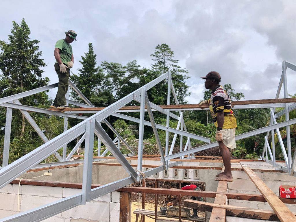 Biak Barat – Teriknya matahari tak mengendurkan semangat personel Satuan Tugas (Satgas) TNI Manunggal Membangun Desa (TMMD) ke-123 Kodim 1708/BN. Dengan penuh dedikasi, mereka bersama warga Kampung Kbusdori, Distrik Swandiwe, Kabupaten Biak Numfor, terus bekerja memasang rangka atap baja ringan pada rumah yang tengah dibangun, Rabu (26/2/2025).