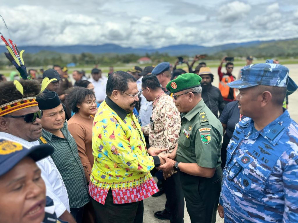 Kasdim 1702/Jayawijaya Mayor Inf Romadlon hadir bersama PJ Gubernur Papua Pegunungan Dr. Velix Vernando Wanggai, S.I.P., M.P.A., Bupati Jayawijaya, Kapolres Jayawijaya, Ketua DPRD, serta unsur Forkopimda lainnya dalam penyambutan tersebut. Kedatangan Gubernur Papua Pegunungan terpilih DR. HC. Jhon Tabo, SE., M. BA., dan Wakil Gubernur DR. Ones Pahabol, SE., MM merupakan bagian dari agenda kerja pemerintahan dalam memperkuat sinergi dengan pemerintah daerah serta masyarakat di wilayah Pegunungan Papua.