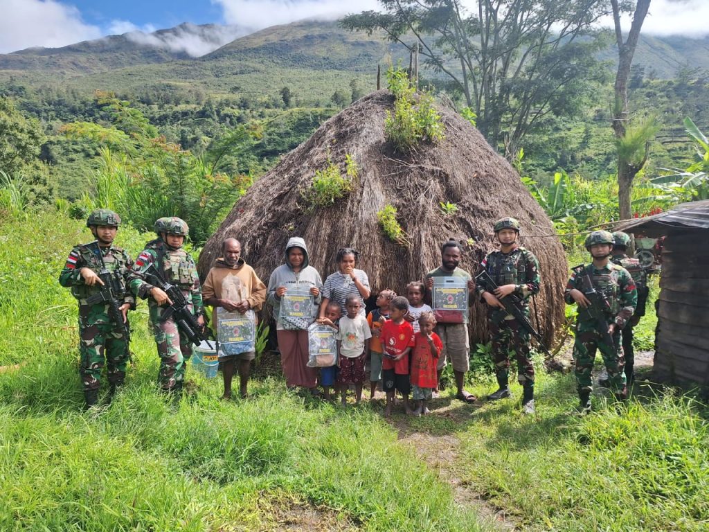 Pos Kurima Satgas Pamtas RI-PNG Kewilayahan Yonif 641/Bru membagikan baju baru kepada masyarakat dari berbagai kalangan, mulai dari anak-anak hingga orangtua yang berada di Kampung Polimo Distrik Kurima, Kabupaten Yahukimo, Provinsi Papua Pegunungan, (26/02/2025).