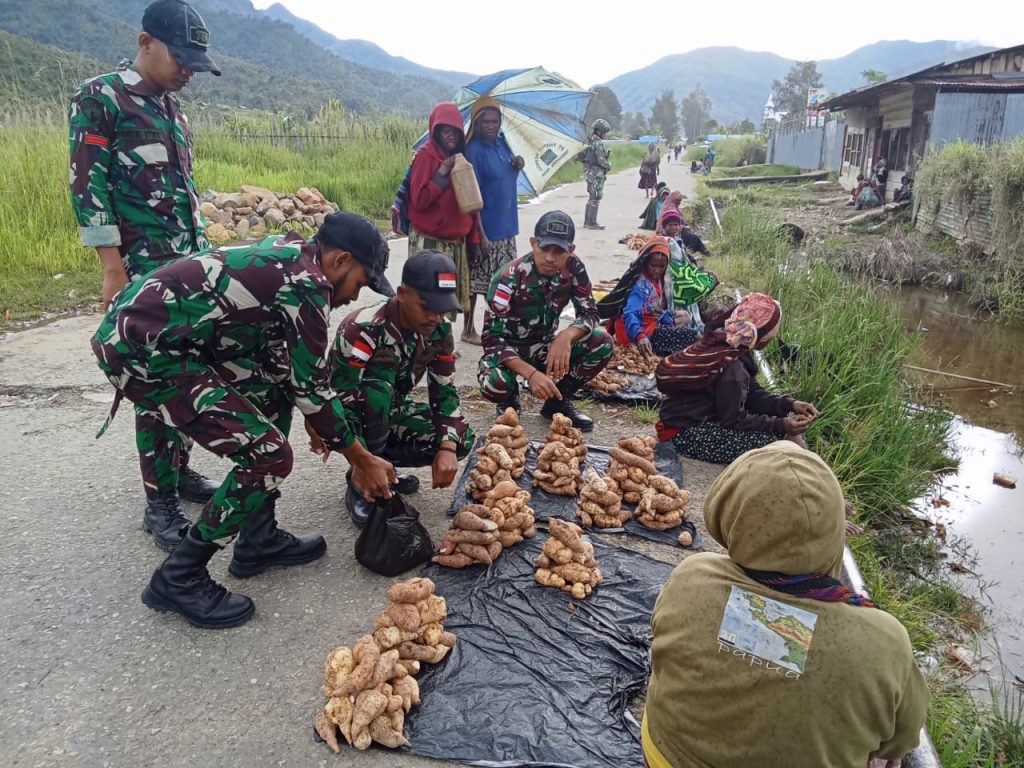 Paniai,- Dalam upaya membantu meningkatkan perekonomian masyarakat, Pos Obano Satgas Yonif 756/WMS yang dipimpin oleh Dantim Serda Bahrun melakukan kegiatan membeli hasil bumi warga yang berada di Distrik Obano Kabupaten Paniai Provinsi Papua Tengah, Senin (24/02/2025).