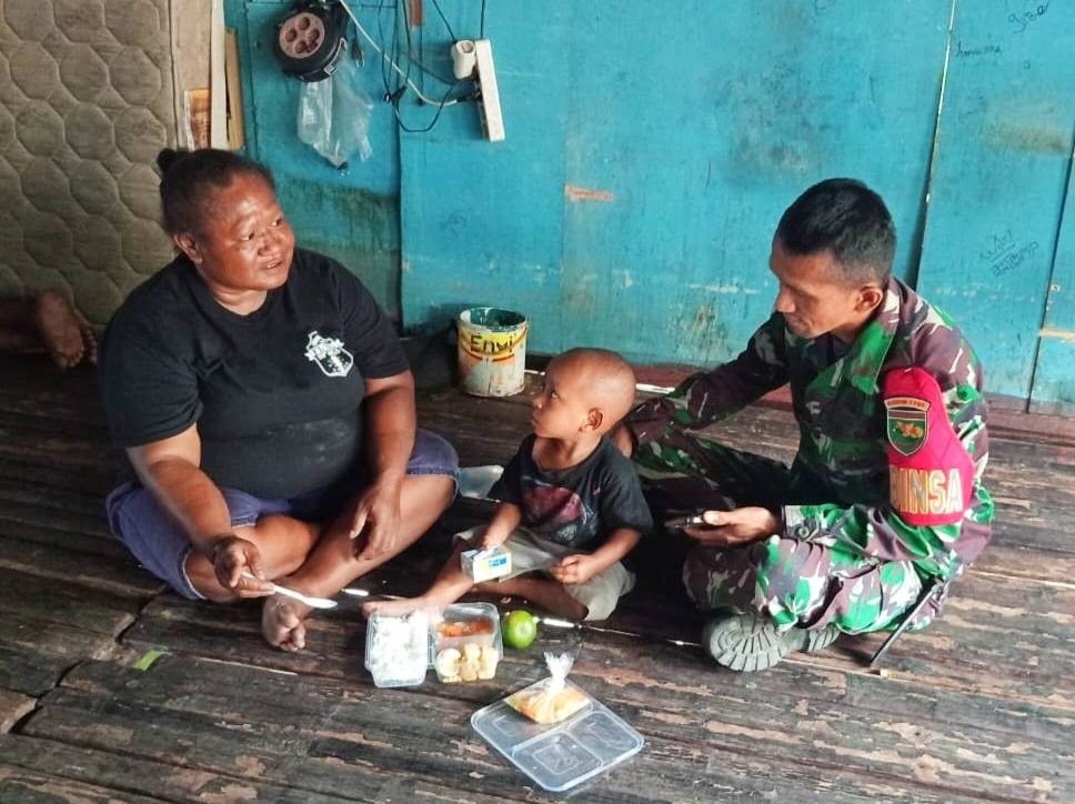 Jayapura – Sebagai bentuk kepedulian terhadap tumbuh kembang generasi muda, Babinsa Koramil 1701-03/Abepura Sertu Irwanto Ma’din memberikan bantuan makanan bergizi gratis kepada anak asuh Koramil, bertempat di kampung Yoka, Distrik Heram, Kota Jayapura, Jum’at (14/3/2025).