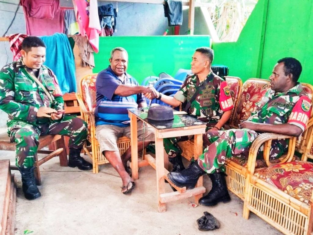 Sentani – Jalin hubungan baik dengan tokoh masyarakat, Tiga orang Babinsa Koramil 1701-01/Sentani dipimpin Serka Taufik Abubakar melaksanakan komunikasi sosial (Komsos) dengan Ketua wilayah adat Lapago Kabupaten Jayapura Bapak Nius Jikwa, bertempat Kampung Sereh, Distrik Sentani, Kabupaten Jayapura. Jum’at (14/3/2025).