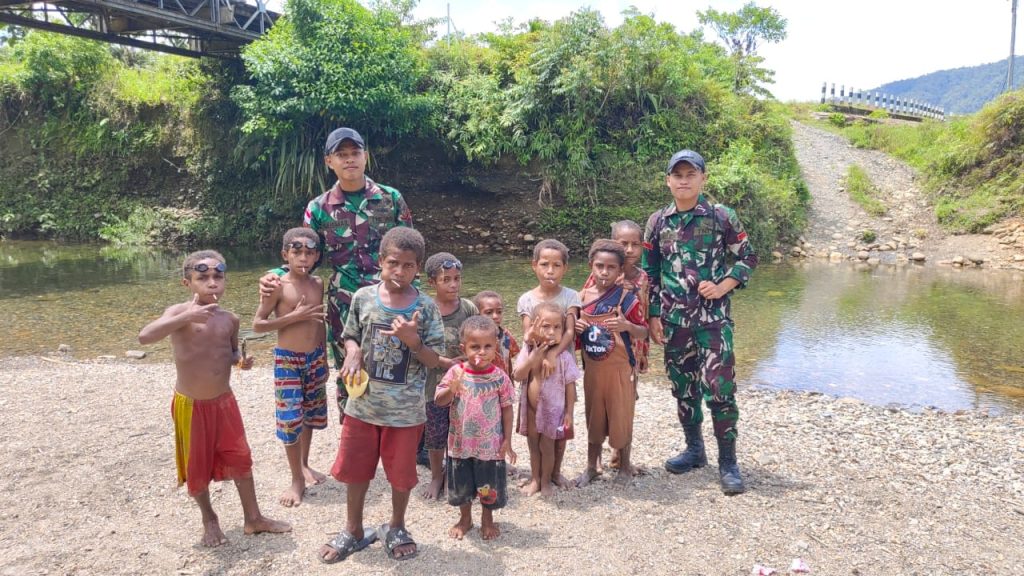 Suasana hangat semakin terlihat ketika antusias anak-anak yang sedang bermain di pinggiran sungai menghampiri personel-personel tersebut seakan-akan mereka sudah menyatu dengan lingkungan wilayah tersebut.