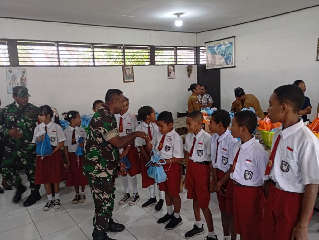 Serui – Berlokasi di SD Negeri 1 Barawaikap, Distrik Anotaurei, Kabupaten Kepulauan Yapen, Komandan Kodim 1709/Yawa yang diwakili oleh Danunit Intel Letda Inf Esrom Ruru dan turut didampingi oleh Babinsa Koramil 01/Serui, melaksanakan Launching Makan Bergizi Gratis (MBG) bagi pelajar di SDN 1 Barawaikap, SD YPK Mariadei dan SD PGRI Serui, Senin (17/03/2025).