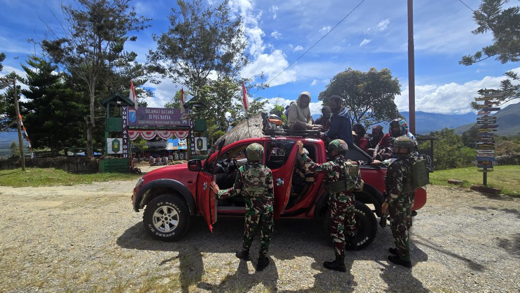 Dalam menjalankan tugas pokok untuk memberikan rasa aman kepada masyarakat, Pos Napua Satgas Yonif 641/Bru melaksanakan sweeping kepada pengendara mobil, Sepeda motor maupun pejalan kaki yang lewat di Distrik Napua, Kabupten Jayawijaya, Provinsi Papua Pegunungan, (03/03/2025).