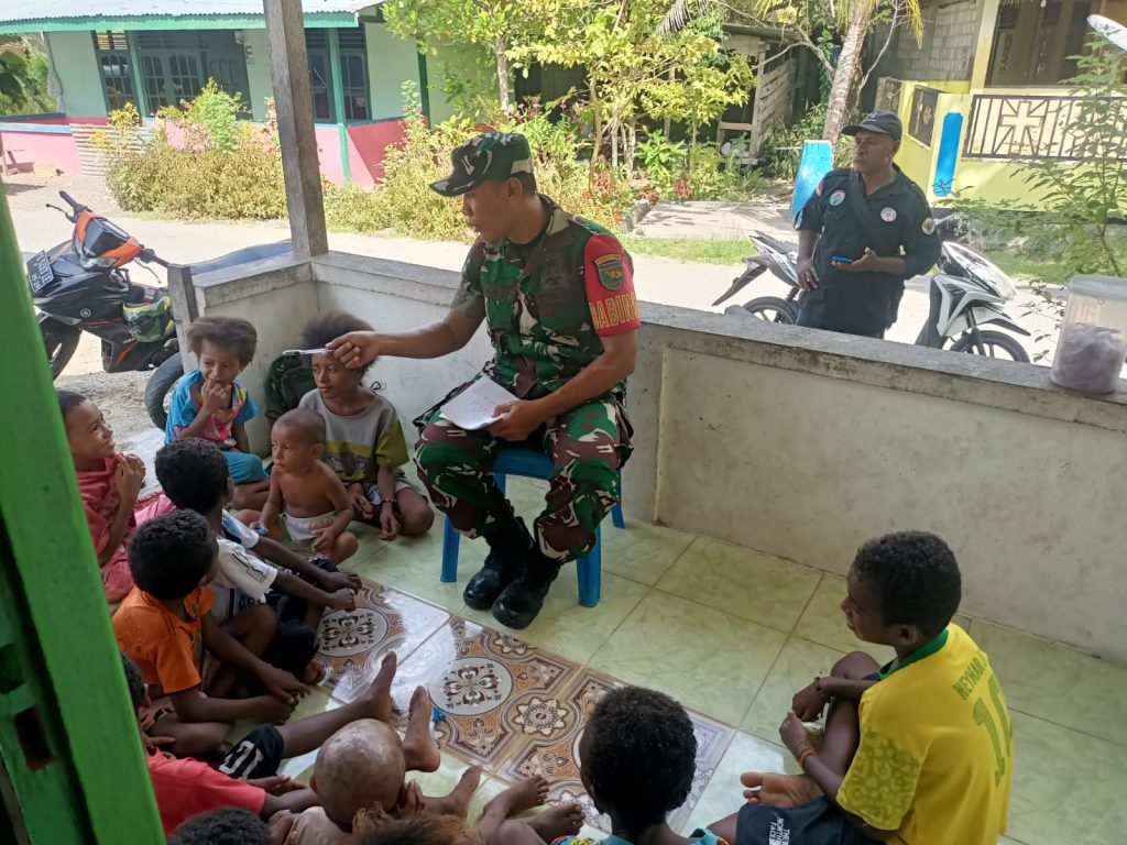 Serui – Tak hanya dekat dengan warga, namun kehadiran babinsa juga sangat ditunggu-tunggu oleh anak-anak diwilayah binaannya, terbukti saat kehadiran Koptu Aan Kurniawan Babinsa Koramil 1709-01/Serui Kodim 1709/Yawa, yang mengisi hari libur anak-anak dengan belajar berhitung yang dilakukan di Kampung Sarawandori, Distrik Kosiwo, Kabupaten Kepulauan Yapen , Minggu (02/03/2025).