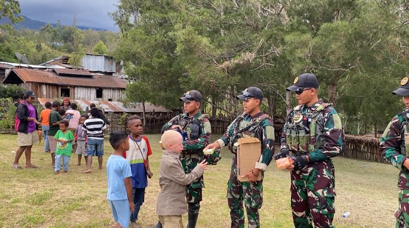 “Terima kasih bapak TNI atas pemberian snack dan makanan ringan,” ucap Opral Wanimbo sambil tersenyum.