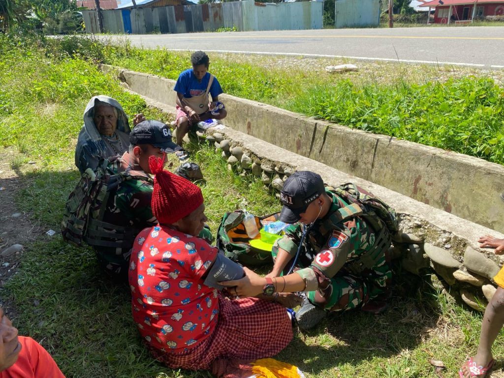 Dalam upaya meningkatkan pelayanan kesehatan dan pengobatan, Personel Pos Bolakme Yonif 641/Bru melaksanakan pelayanan kesehatan keliling untuk masyarakat Distrik Bolakme, Kabupaten Jayawijaya, Provinsi PapuaPegunungan, (15/03/2025).