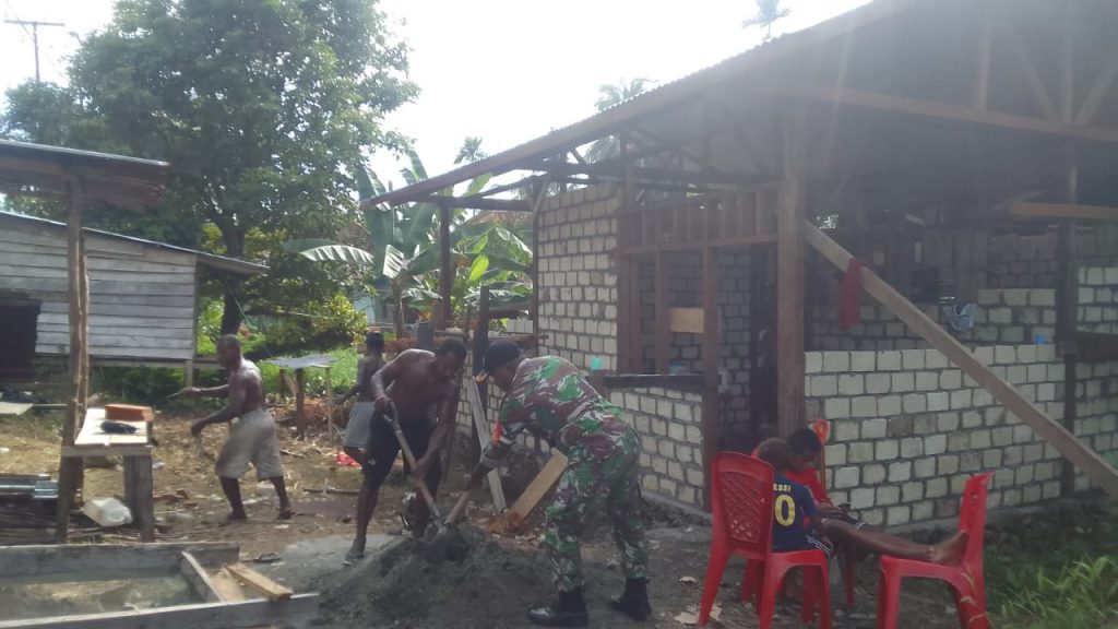 Waren – Sebagai wujud kepedulian TNI-AD dalam meringankan kesusahan rakyat diwilayah binaannya, Koptu Bram Logof Babinsa Koramil 1709-03/Waropen Bawah Kodim 1709/Yawa, membantu pembangunan rumah milik salah satu warganya yang berlokasi di Kampung Sarafambai, Distrik Waropen Bawah, Kabupaten Waropen, Senin (17/03/2025).