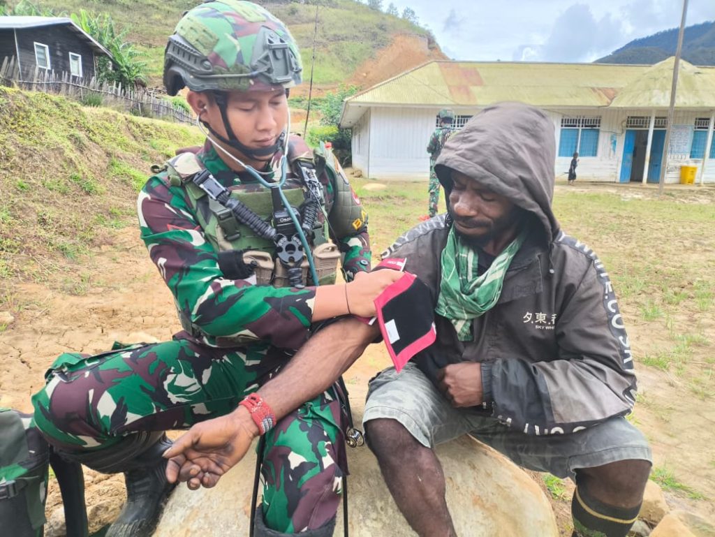 LANNY JAYA – Dalam upaya membantu kesulitan masyarakat terutama dibidang kesehatan Satgas Yonif 614/RJP Pos Balingga memberikan pelayanan kesehatan gratis kepada masyarakat kampung Balingga, Distrik Balingga, Kabupaten Lanny Jaya, Papua Pegunungan, Sabtu (15/3/2025).